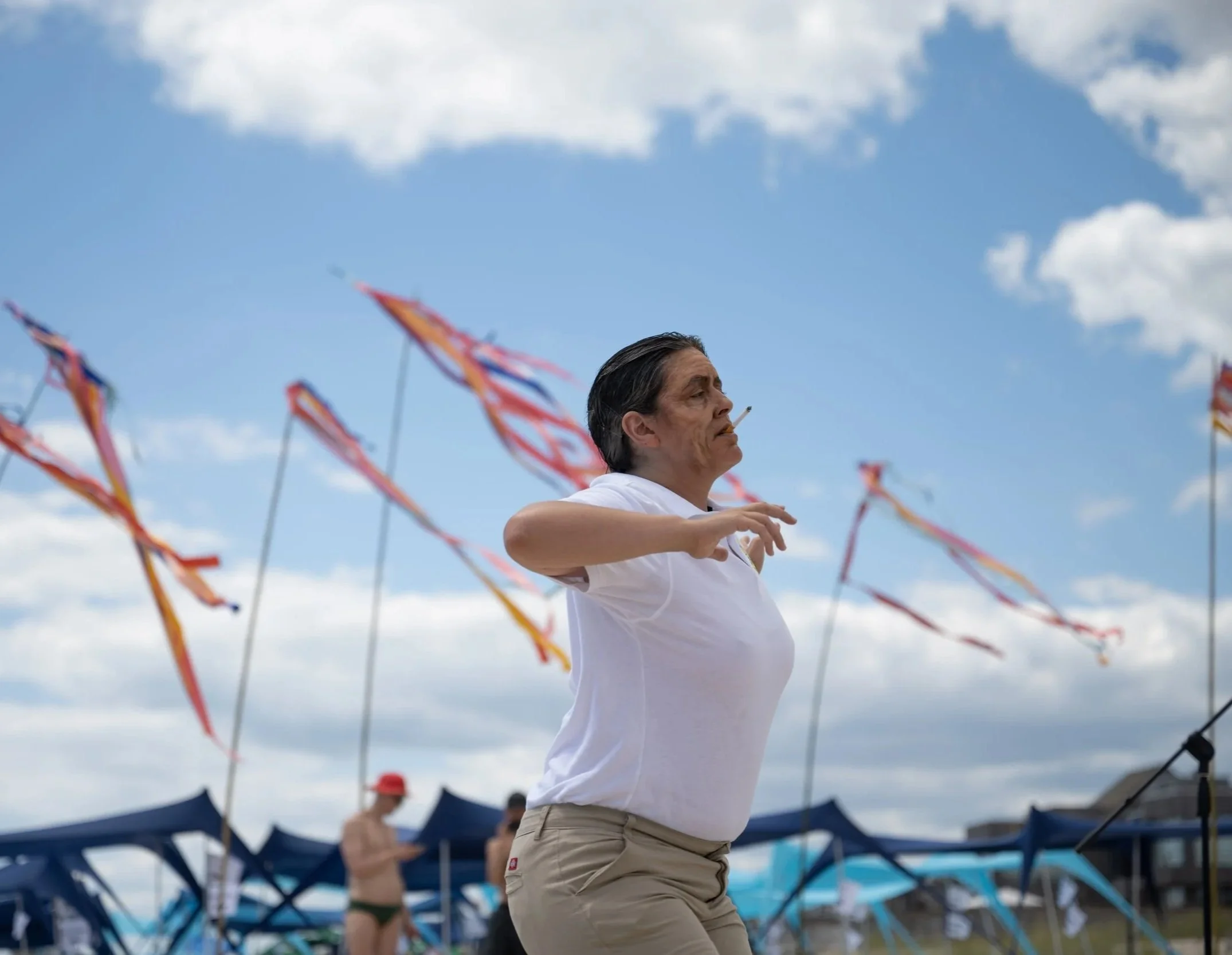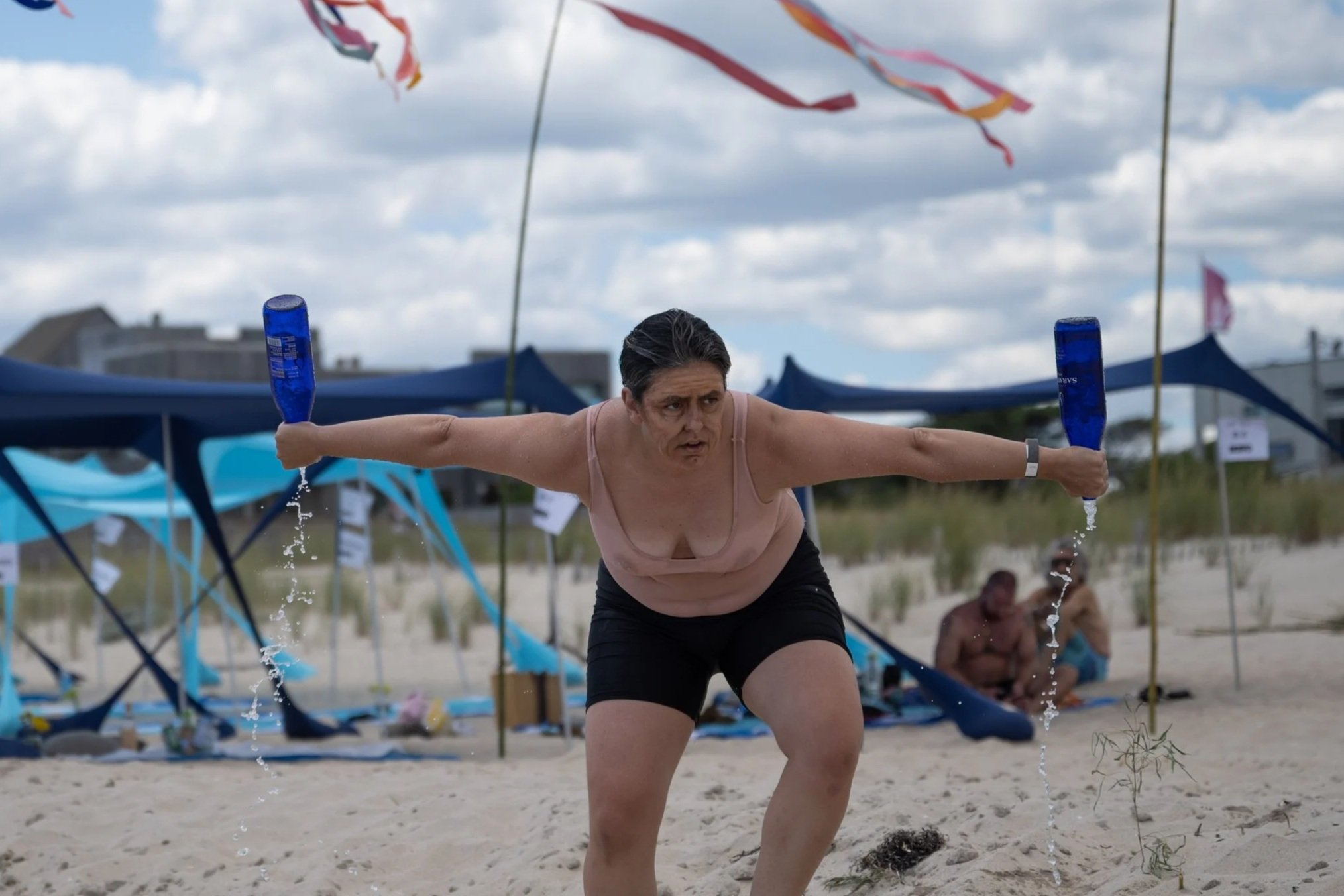 Through Dworman’s queer body and on this gay beach, Cuomo’s fall from grace is neither forgiven nor re-canceled, but repurposed as a rite of failure.
